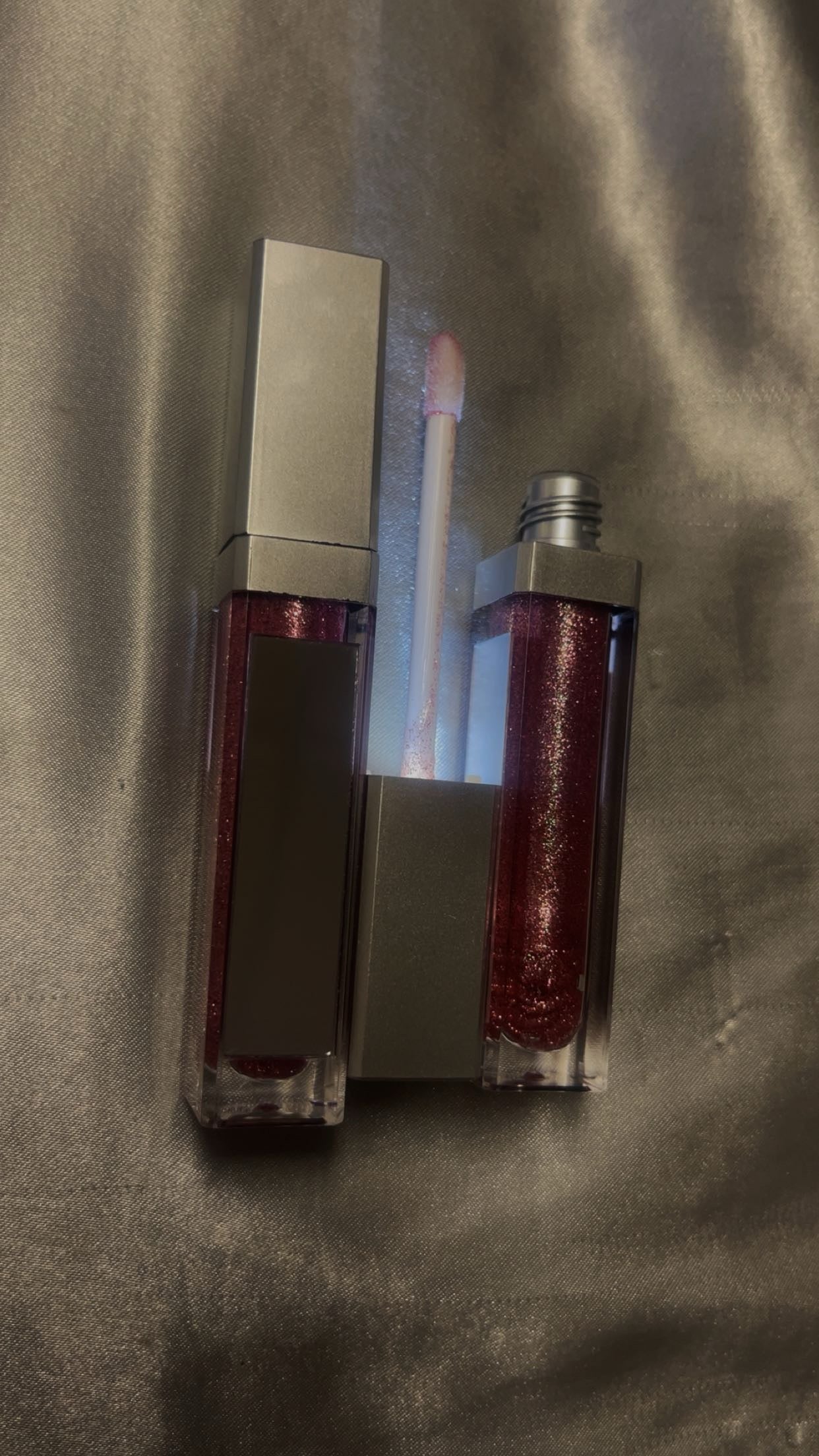 Shiny hydrating clear pink glitter lip gloss with light & mirror.